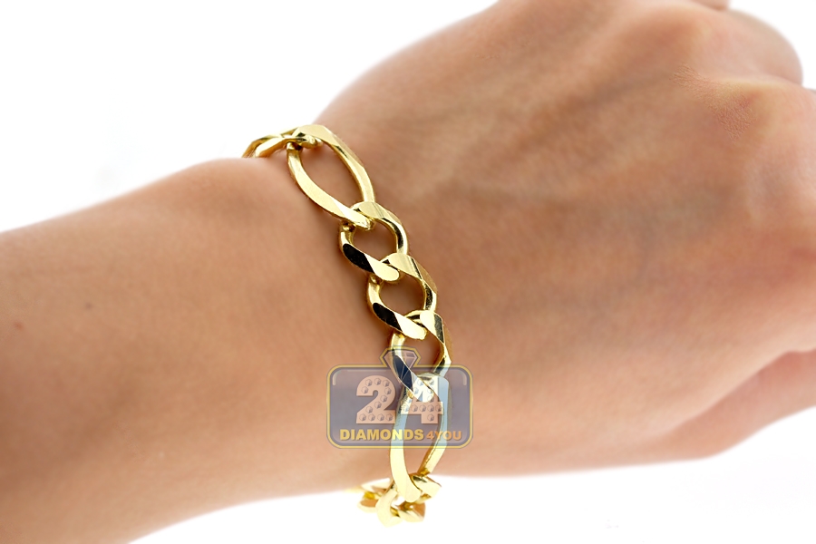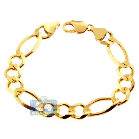 10K Yellow Gold Figaro Link Mens Bracelet 12 mm 9 Inches