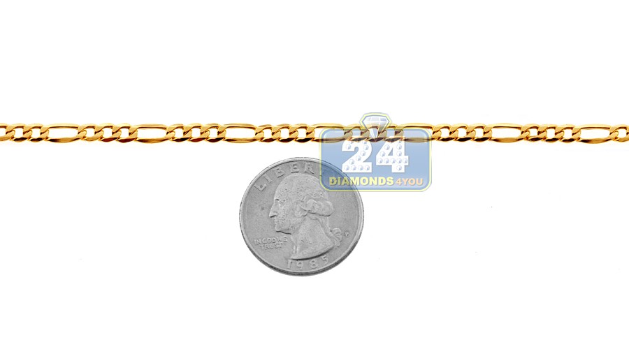10K Yellow Gold Figaro Link Mens Bracelet 4 mm 8 Inches
