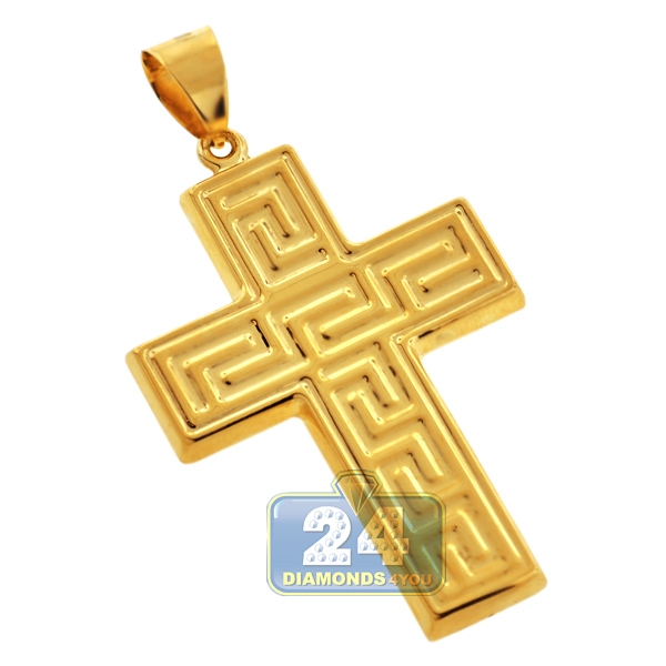 10K Yellow Gold Greek Key Cross Mens Pendant