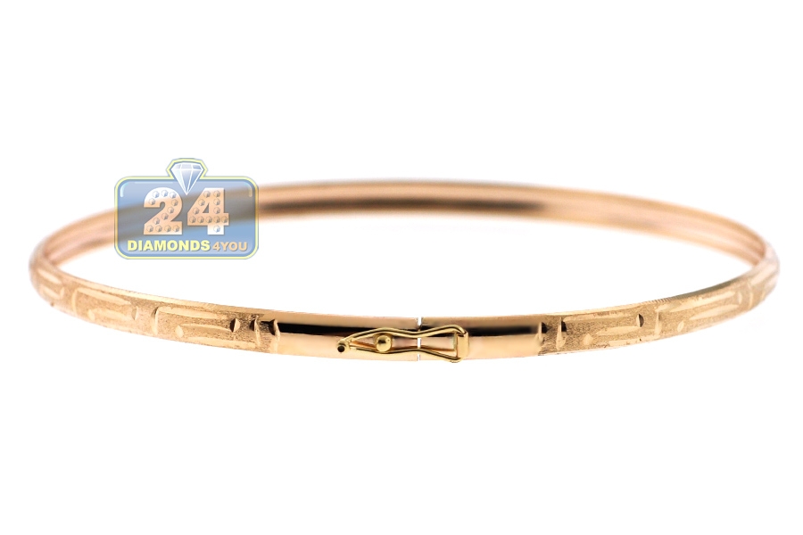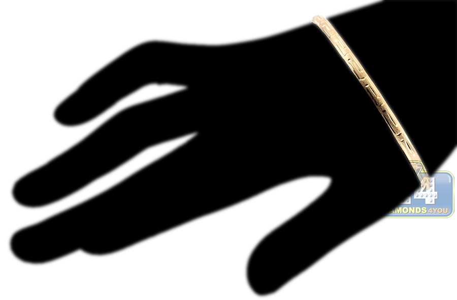 This diamond-cut bangle bracelet adds smart style and shimmer to any look! It's produced from solid 10k yellow gold, and has highly polished and diamond-cut finish with Greek Key patterns. Our women's bangle bracelet features 7 inches in inner length and 4 mm in width. Simple and stylish, this bangle bracelet is one you are certain to adore!