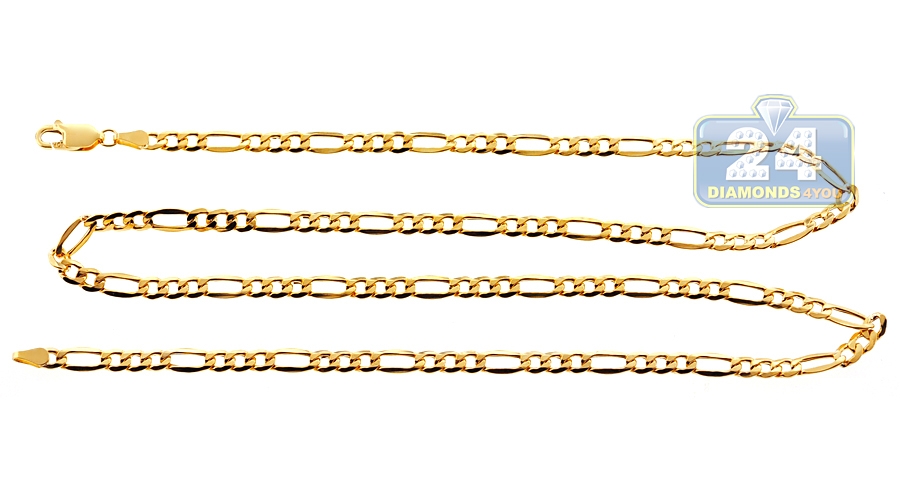 10K Yellow Gold Hollow Figaro Link Mens Chain 4 mm