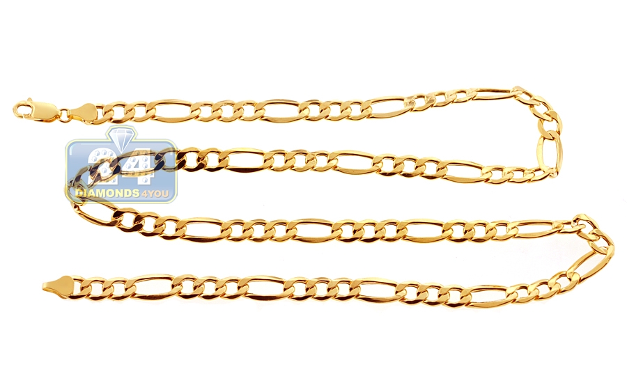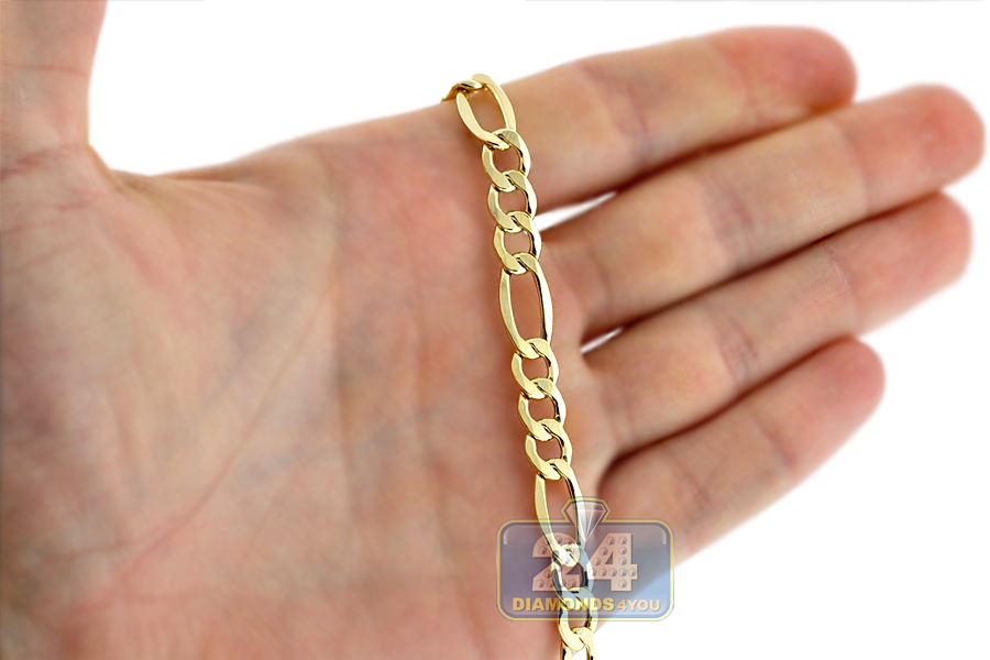10K Yellow Gold Hollow Figaro Link Mens Chain 7 mm