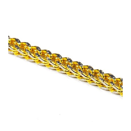 A fabulous gold franco chain is designed for handsome men! Having a great looking semi-hollow franco design, the piece is smartly made of affordable 10k yellow gold in Italy, and features high-polished diamond-cut finish. The 10k yellow gold chain has width of 4 mm, and available in the length of 24, 26, 30 or 36 inches. It's secured by a comfortable lobster clasp. A great men's gold necklace that can be worn on dressy occasions or everyday!