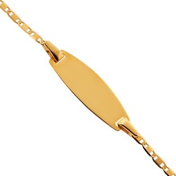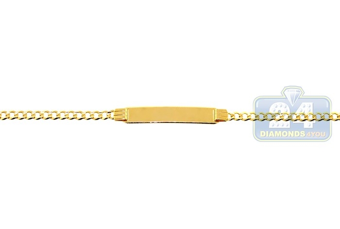 This adorable child's ID bracelet is crafted in gleaming 10k yellow gold. The brightly polished ID tab is linked to a smooth and slim concave curb links. Our kid's ID bracelet measures 6 inches in length, 8 mm in width, and ID tab is 28 x 6 mm. This cute bracelet is a perfect accessory and an amazing gift for your child.