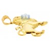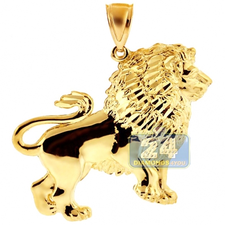 This gorgeous pendant is shaped in a proud lion's body with diamond-cut accents. It's made of solid 10k yellow gold, and highly polished for ultra smooth shiny finish. Men's gold pendant measures 51 mm in length, 47 mm in width, and weights approximately 5.9 grams. This gold lion pendant is a symbol of protection and royal power!