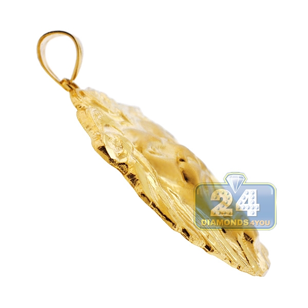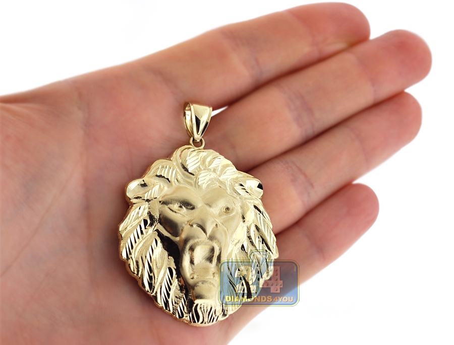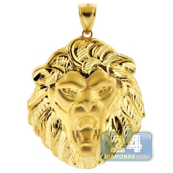 Solid 10K Yellow Gold Lion Head Mens Pendant