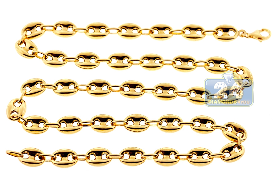10K Yellow Gold Mariner Puff Link Mens Chain 9 mm