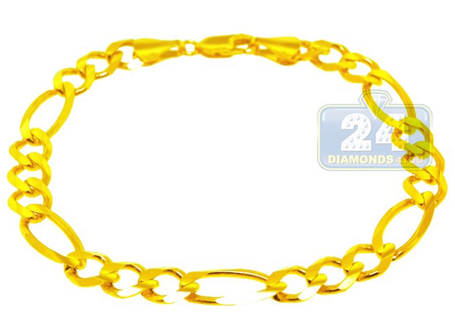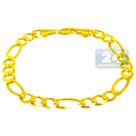 Add this gold figaro bracelet to your collection! It has the 1+3 link design which is artfully handmade of affordable 10 karat yellow gold with high-polished shiny finish. Our men's gold bracelet measures 8.5 inches in length, 7 mm in width; and closed by lobster claw. A great yellow gold bracelet that can be worn on dressy occasions or everyday.