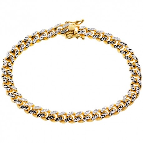 Our shiny Miami Cuban link bracelet takes style to a whole new level! It is masterly created from solid 10k yellow gold, and featured diamond-cut pattern for ultra brilliance. The bracelet has length of 8.5 inches, width of 7 mm and weight of 34.0 grams. It is also secured with a user-friendly box-with-double-lock clasp. This gold bracelet is always a sophisticated choice!