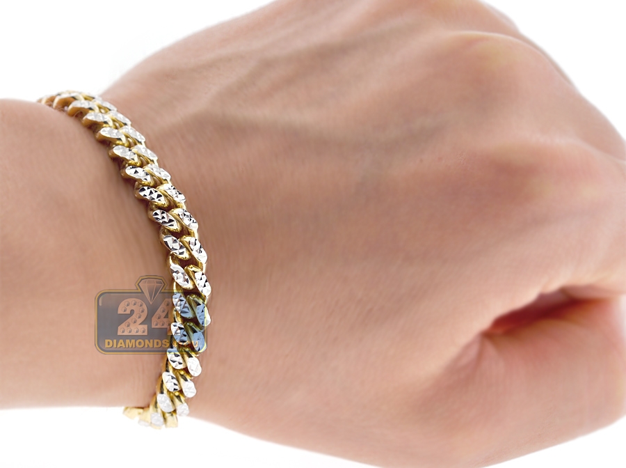 10K Yellow Gold Miami Cuban Diamond Cut Mens Bracelet 7 mm