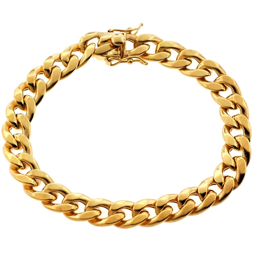 Get pure luxury with our Miami Cuban link bracelet! It is masterly produced from warm 10k yellow gold, and features high-polished finish. The jewelry piece measures 8.75 inches in length, 10 mm in width and approximately 19.5 grams in weight. It is also secured with the safest box-with-double-lock clasp. Add this handsome gold bracelet to your collection!
