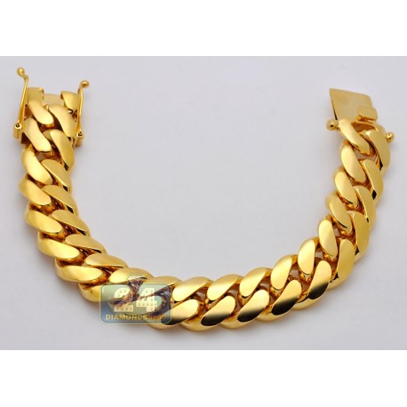 10K Yellow Gold Miami Cuban Link Mens Bracelet 18 mm 9 Inches