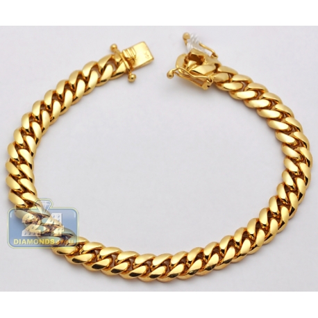 10K Yellow Gold Miami Cuban Link Mens Bracelet 9 mm 9 Inches