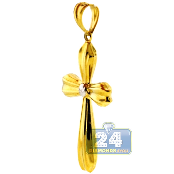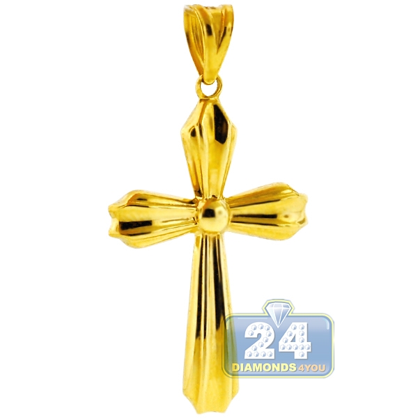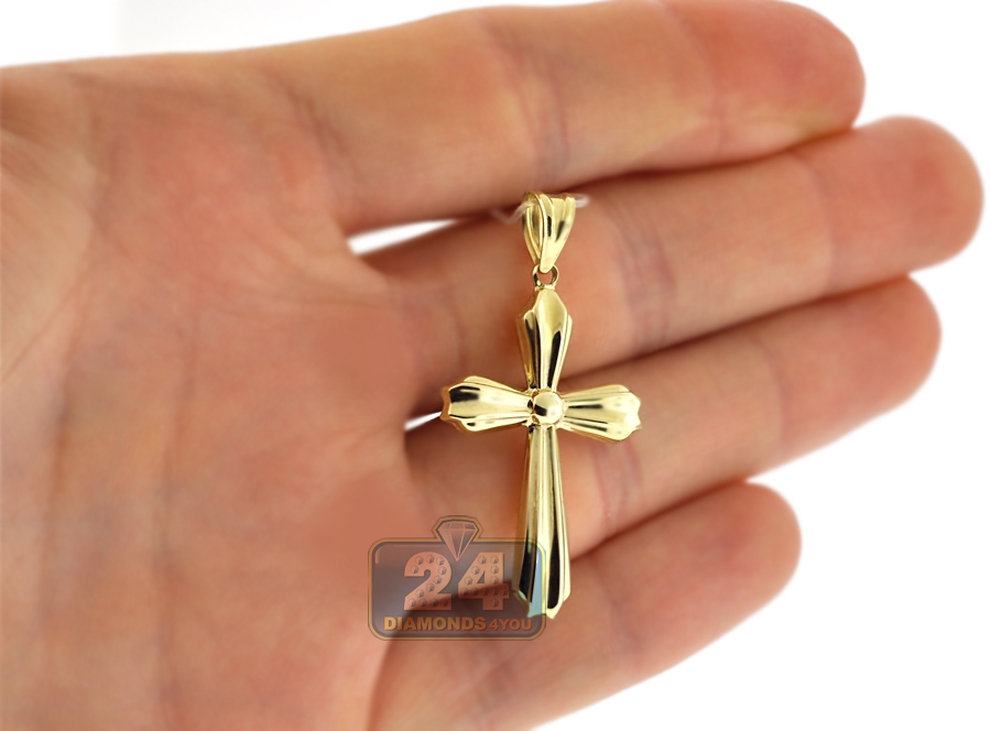 Our cross pendant is a classic but stylish symbol of your faith! Featuring elegant puffed design, it is masterly made of warm 10k yellow gold with highly polished finish that makes this women's religious cross sparkle from every angle. The gold cross pendant measures 41 mm in total length (33 mm without bail) and 21 mm in width. You may also look at our rich collection of gold chains to find a perfect match.