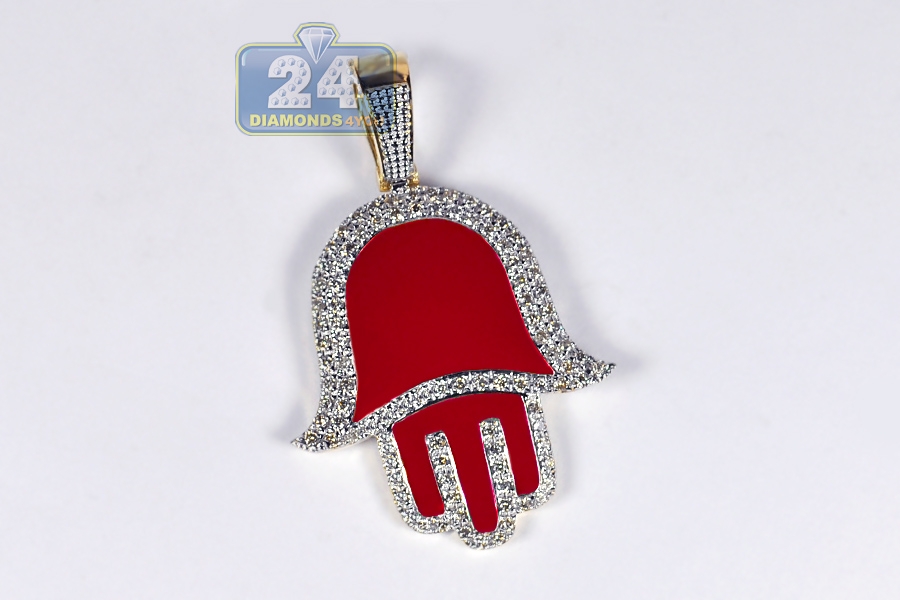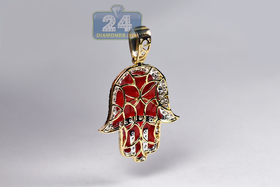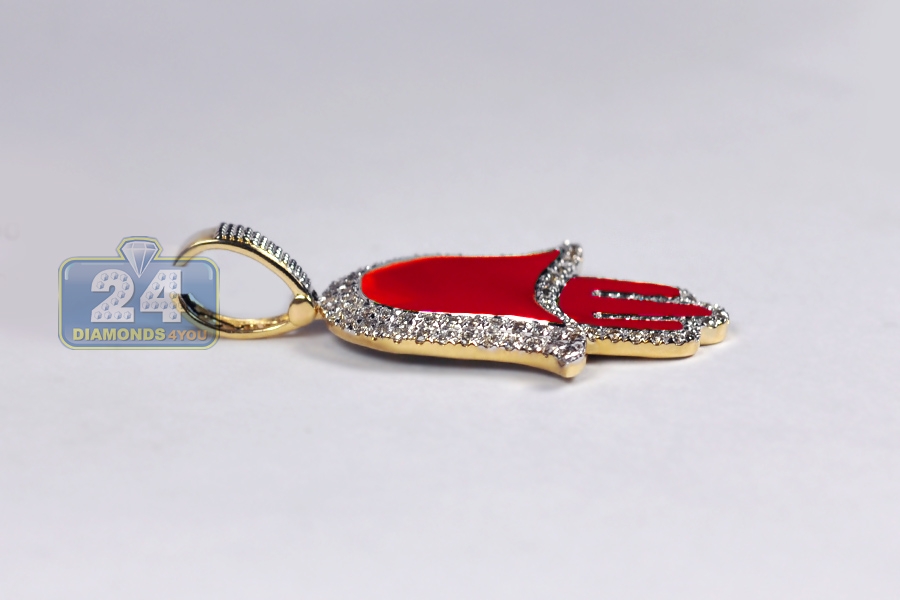 10K Yellow Gold Red Enamel 0.80 ct Diamond Hand of God Pendant