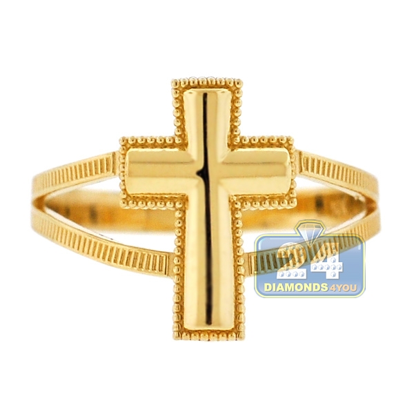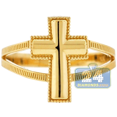 10K Yellow Gold Religious Cross Womens Ring