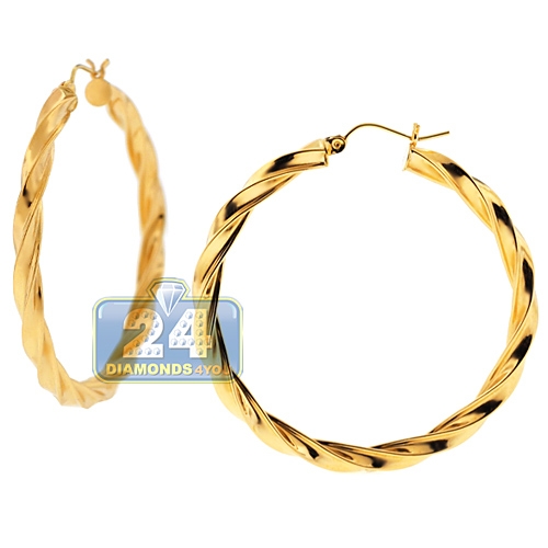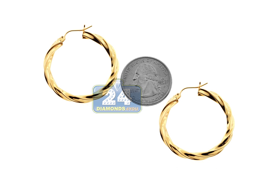 10K Yellow Gold Round Swirl Womens Hoop Earrings 1 1/4 Inches