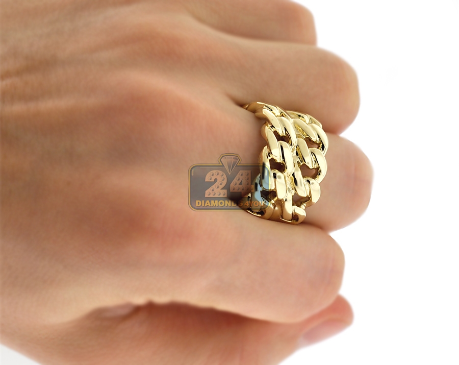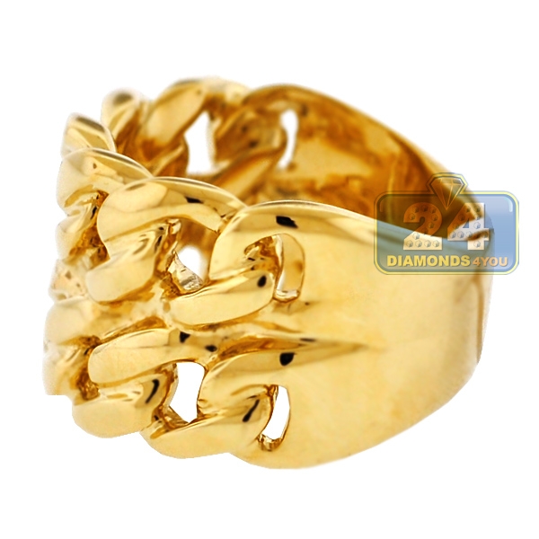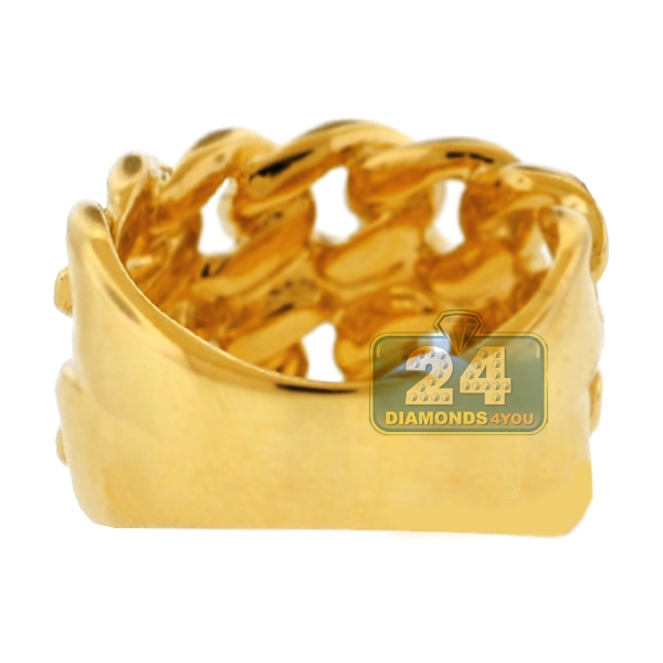 Our diamond ring for men stands out with its popular miami cuban link design! It is professionally produced from solid 10k yellow gold, and features highly polished finish for smooth touch. This massive gold ring can be worn as signet as well as pinky piece!