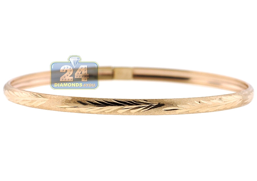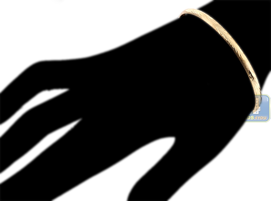 Add some glamour and shimmer to any look with this ladies bracelet! It is expertly produced from solid 10k yellow gold, and has highly polished finish with an unique diamond cut pattern. Our women's gold bracelet has inner length of 7 inches and width of 4 mm. Simple and stylish, this bangle bracelet is one you are certain to adore! Enjoy wearing solo or with matching bracelets.