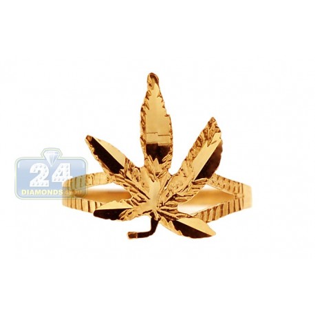 10K Yellow Gold Marijuana Leaf Womens Ring