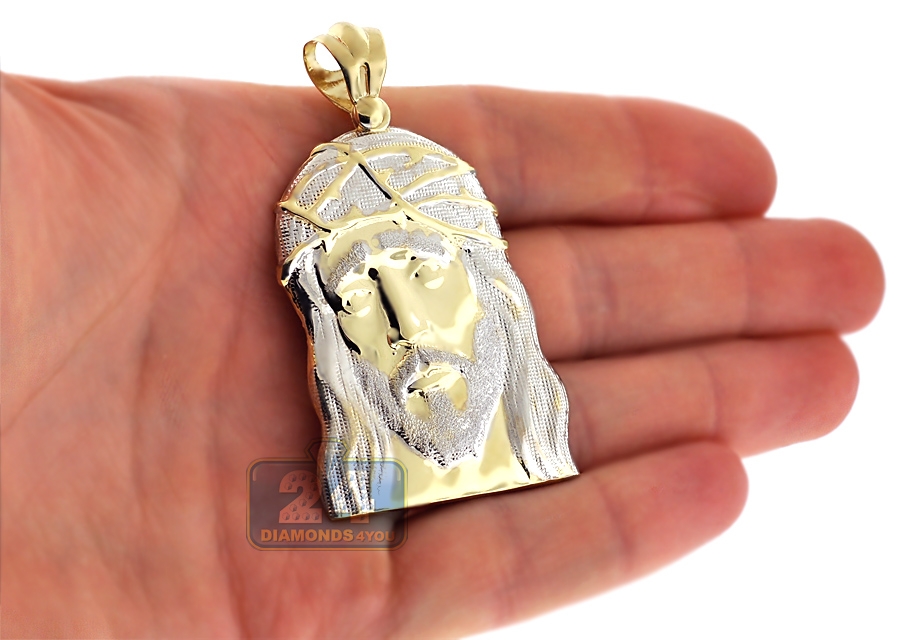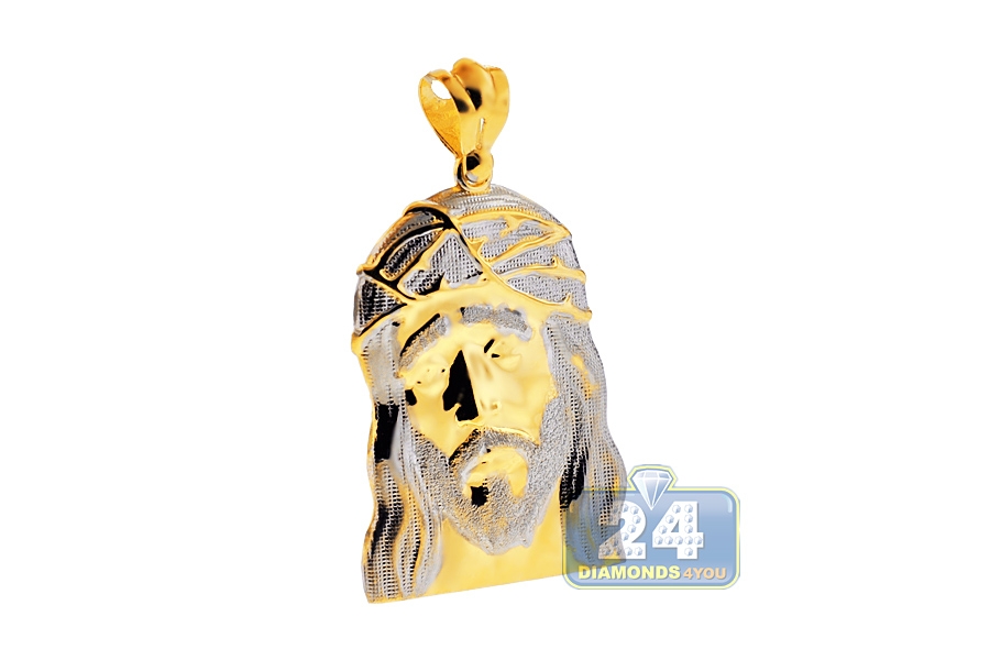 10K Yellow Gold Jesus Christ Face Mens Pendant 2 1/2 Inches