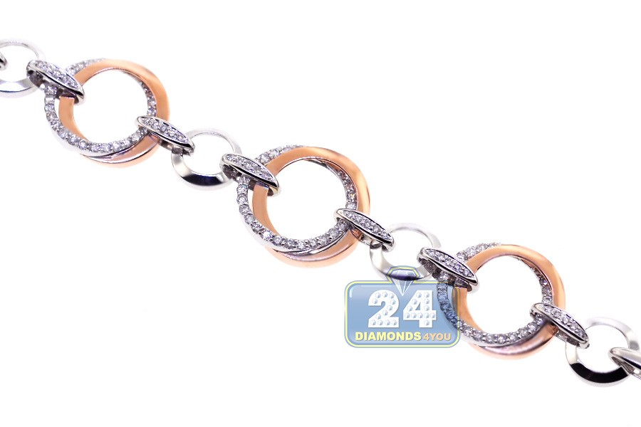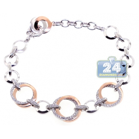 14K Two Tone Gold 1.34 ct Diamond Circle Link Womens Bracelet