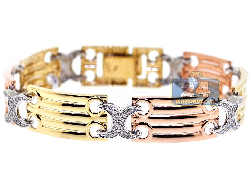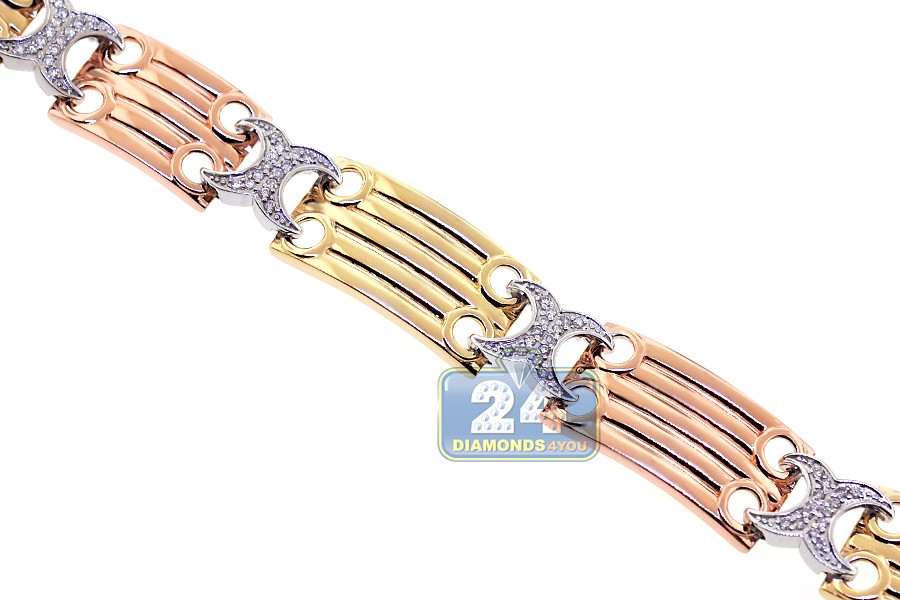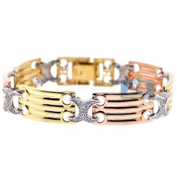 14K Three Tone Gold 0.75 ct Diamond X Link Womens Bracelet