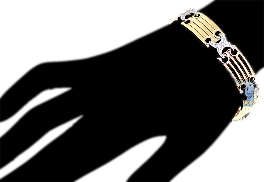 This women's diamond bracelet has stylish X link design you'll love! It's professionally produced from 14 karat gold of white yellow, rose color; and highly polished for ultra shimmering finish. Our X link bracelet is accented with 0.75 carat of icy white round brilliant-cut natural diamonds. It measures 8.5 inches in length, 13 mm in width. Take her breath away with this splendid diamond wrist bracelet!