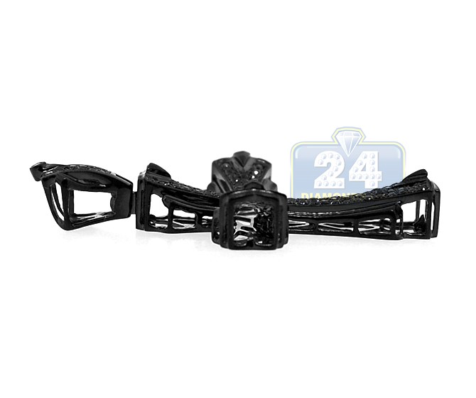 Touch the heart of someone special when you give him this delicately styled black diamond cross pendant! Ably handmade of solid 14k white gold, it features highly polished smooth finish, and covered with long-lasting black rhodium. The religious cross pendant is paved with treated black round-cut natural diamonds of 0.62 carat. Our men's diamond pendant measures 46 mm in height and 24 mm in width. The richest of black diamonds are distinctive, dramatic, and absolutely in vogue!