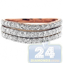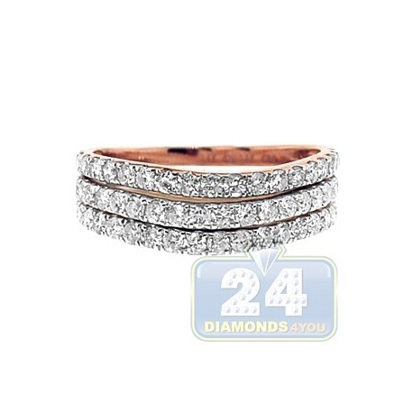 14K 3 Tone Gold 1.10 ct Diamond Womens 3 Band Ring Set