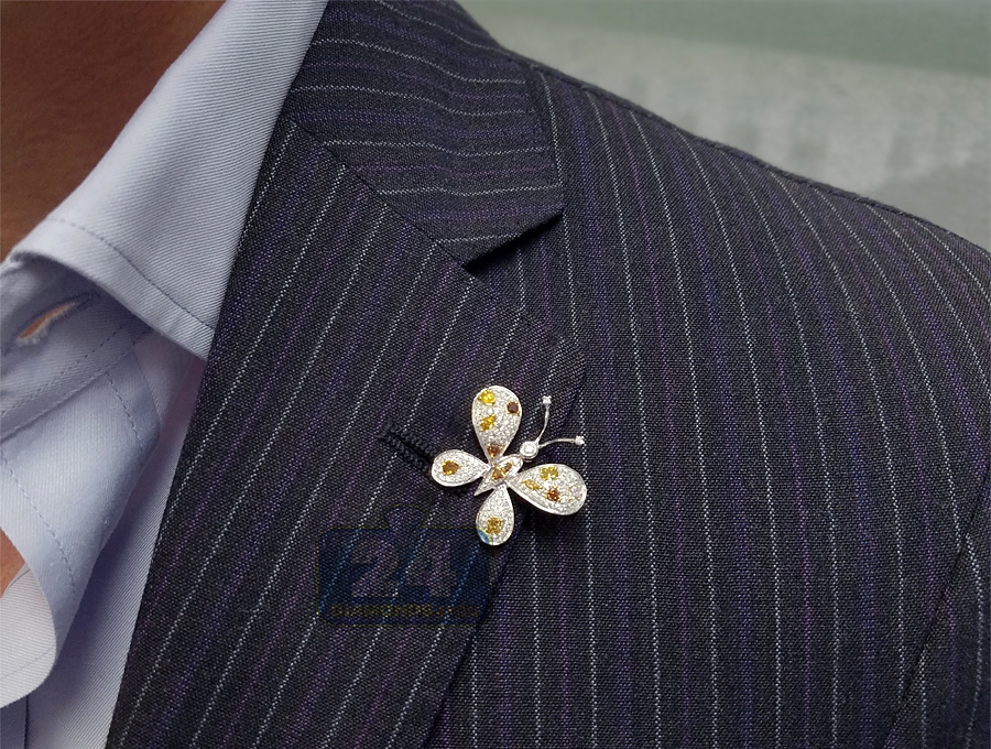 14K White Gold 1.89 ct Fancy Diamond Butterfly Brooch Pendant