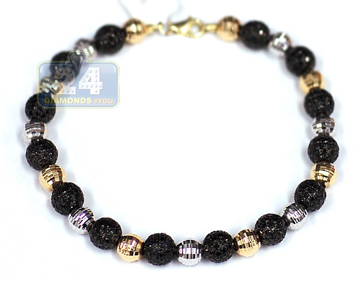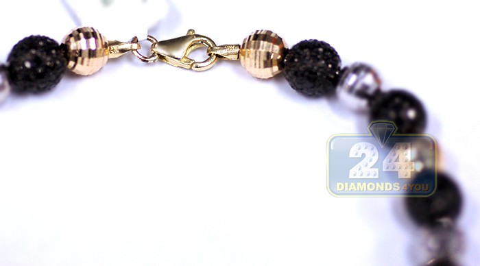 14K Two Tone Gold 10.50 ct Black Diamond Bead Mens Bracelet