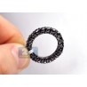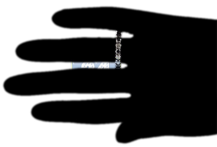 All black and mysteriously gorgeous, this eternity ring is so charming and fascinating! The jewel is masterly made of 14k gold covered with black PVD, and skillfully handset all the way around with 19 pieces of natural black round cut diamonds weighting 3.61 carat. Our band can be worn individually or combined with other matching rings as well. What an exotic look and feel!