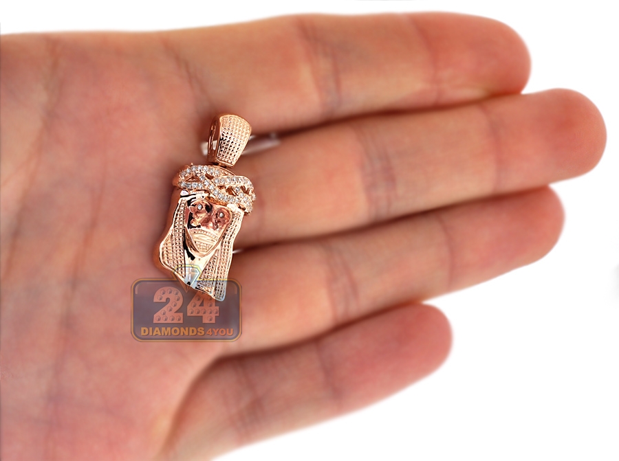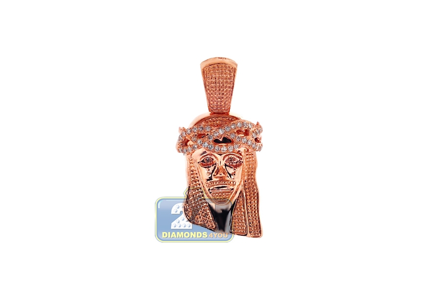 14K Rose Gold 0.23 ct Diamond Jesus Christ Head Mens Pendant