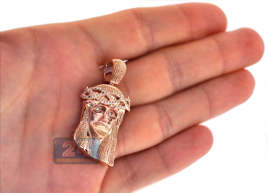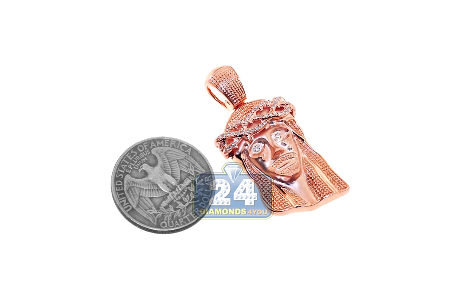 14K Rose Gold 0.31 ct Diamond Jesus Christ Head Mens Pendant