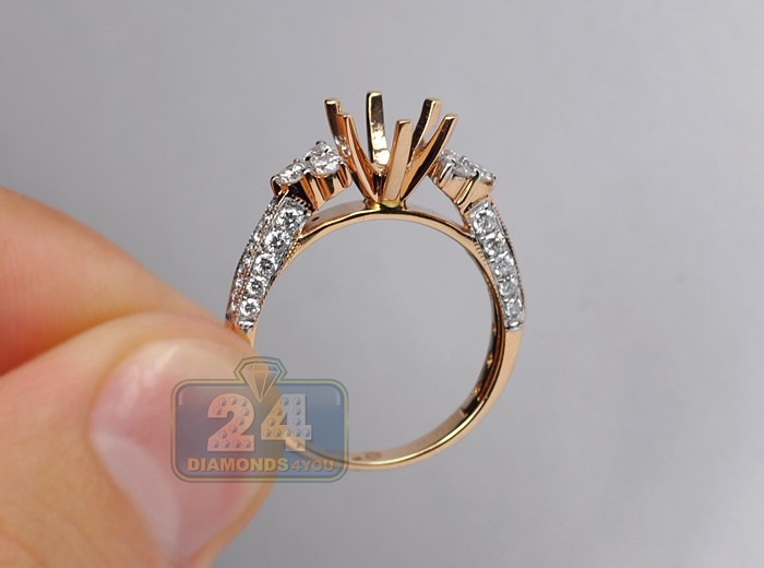 14K Rose Gold 0.89 ct Diamond Semi Mount Engagement Ring