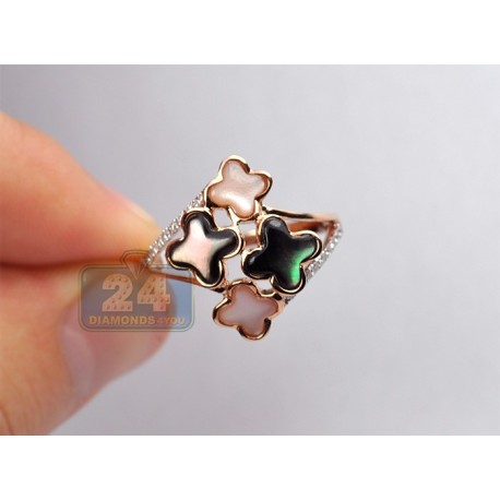 14K Rose Gold 0.20 ct Diamond Multicolored Opal Clover Ring