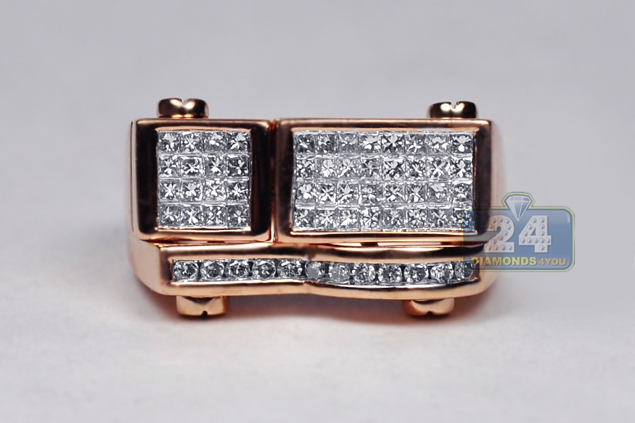 14K Rose Gold 1.14 ct Diamond Mens Rectangle Ring
