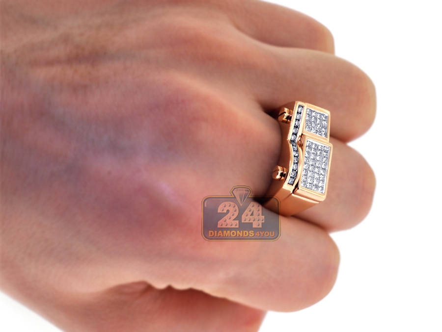 Unique design gives our signet ring depth and dimension! It's professionally created from lustrous 14k rose gold, invisible-set with white princess-cut diamonds and channel-set with round brilliant-cut stones, all totaling 1.14 carat. This men's ring is a handsome reminder of your sophisticated taste.