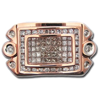 14K Rose Gold 1.50 ct Princess Round Cut Diamond Mens Ring