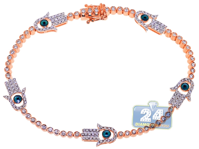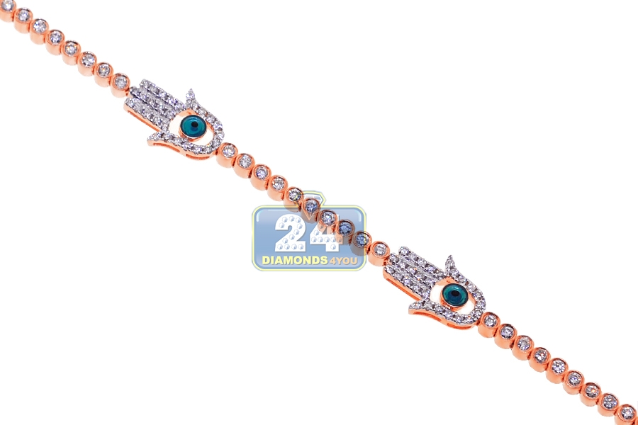 14K Rose Gold 1.60 ct Diamond Hamsa Hand Tennis Bracelet