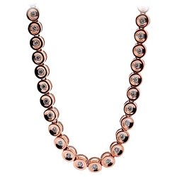 You'll arrive like no other in our diamond tennis chain! Skillfully produced from hot 14 karat rose gold, it has precisely polished shiny look. The tennis necklace is bezel set with gleaming white round brilliant-cut natural diamonds weighting approximately 13.00 carats. This men's diamond chain features 30 inches in total length, 5 mm in width; and closed by reliable barrel clasp. Add a truly luxurious touch to your attire with the bezel set diamond necklace!