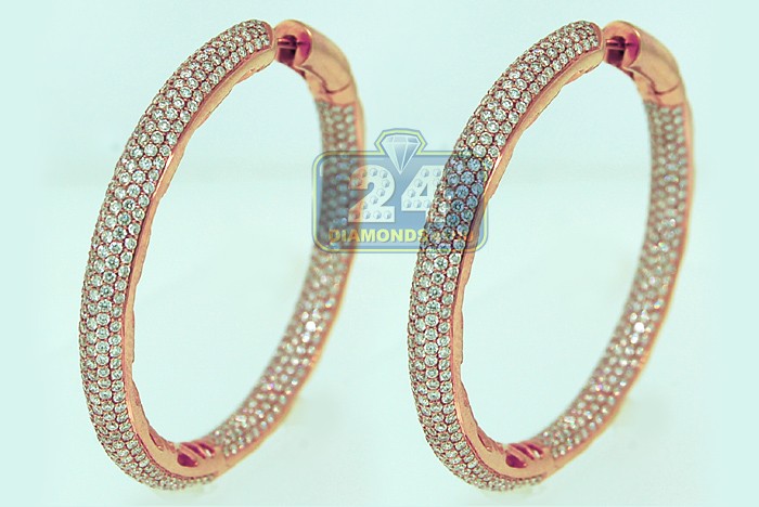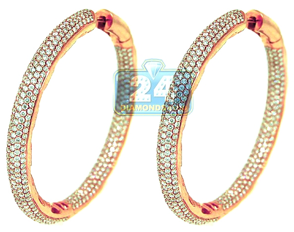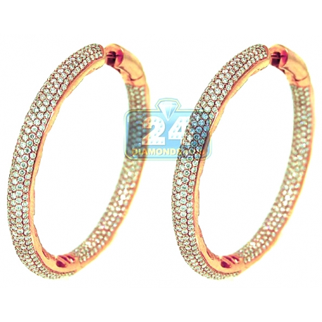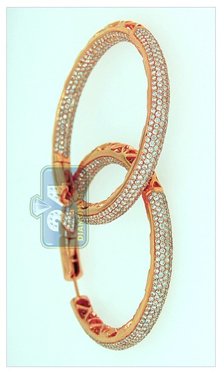 14K Rose Gold 14.42 ct Diamond Womens Hoop Earrings 2.25 Inch