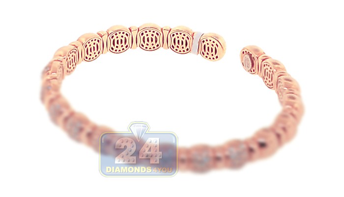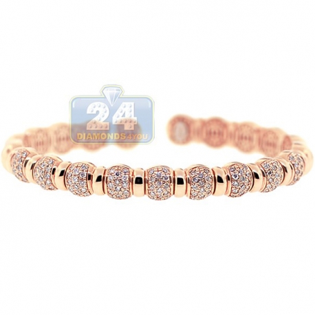 14K Rose Gold 1.57 ct Diamond Bead Womens Cuff Bracelet