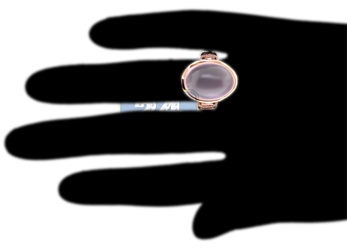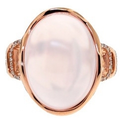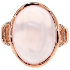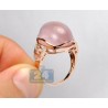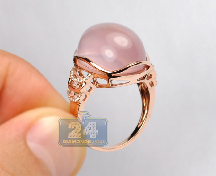 14K Rose Gold 17.49 ct Pink Quartz Cabochon Diamond Womens Ring