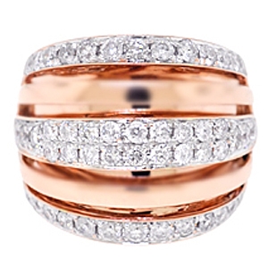 14K Rose Gold 1.89 ct Diamond Womens Multirow Ring