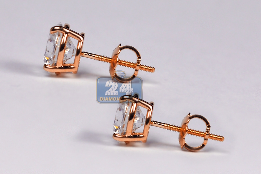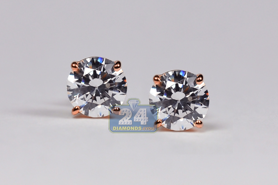 14K Rose Gold 2.00 ct Swarovski Crystal Womens Stud Earrings