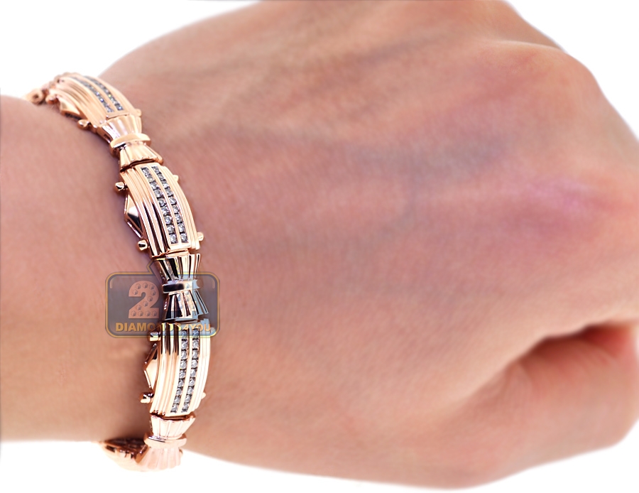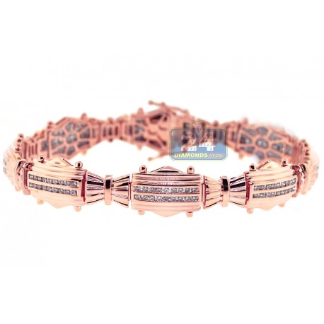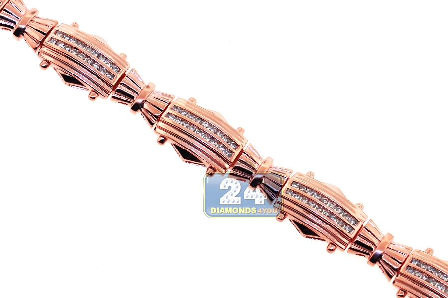 14K Rose Gold 2.03 ct Channel Diamond Link Mens Bracelet