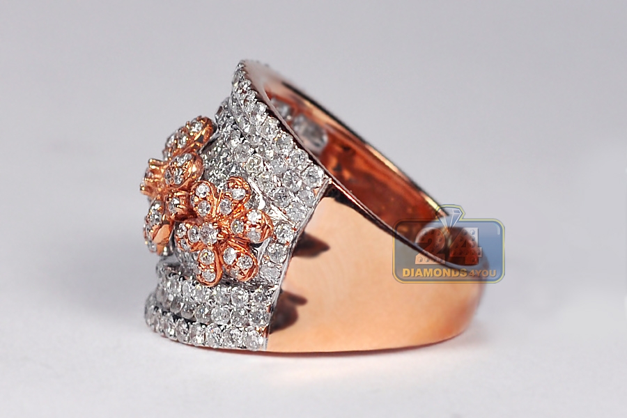 14K Rose Gold 2.17 ct Diamond Flower Womens Band Ring
