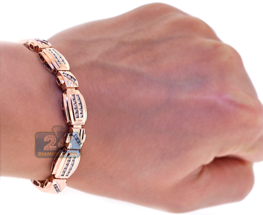14K Rose Gold 2.58 ct Diamond Link Mens Bracelet 8 3/4 Inches